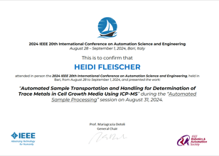 Fleischer, H. et al.: Automated Sample Transportation and Handling for Determination of Trace Metals in Cell Growth Media using ICP/MS. (Saturday, August 31st, 02:00 pm)